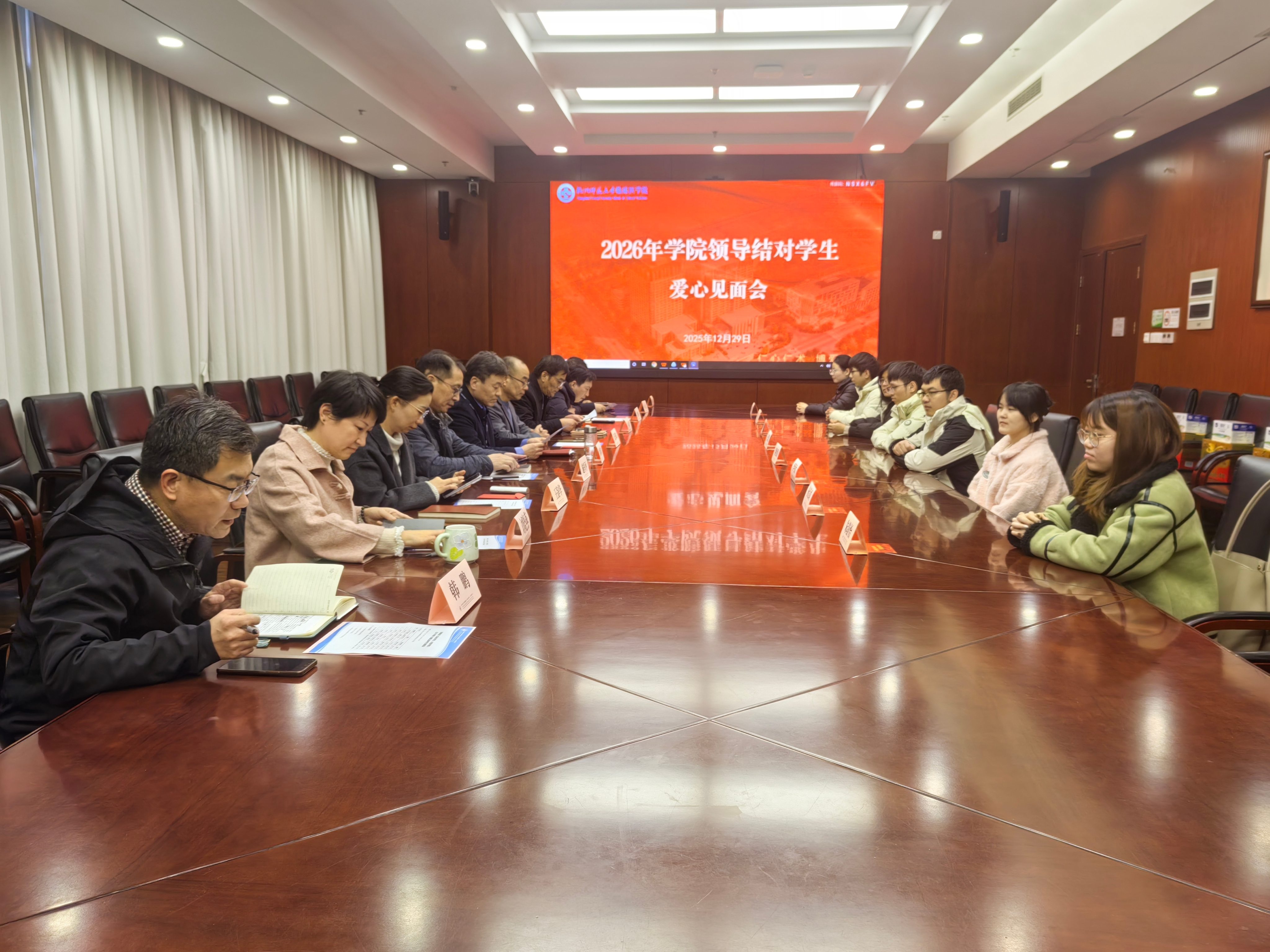 12月29日下午,学院领导干部结对学生爱心座谈会在金华路校区教学综合楼201会议室举行。学院全体领导班子成员与8名结对学生代表齐聚一堂,共话成长。